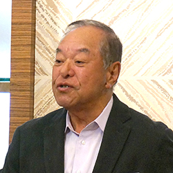 皆様こんにちは。今月はロータリー財団月間ということで、いつも多額のご寄付をいただいております伊丹さんに感謝の言葉ということで申し上げさせていただきます。例年伊丹さんには、ポール・ハリス・ソサエティとして多額の寄付をいただいております。これは年間1000ドル以上の寄付をされる方に認証される制度で、伊丹さんはもう常連ということなんですが、不思議と褒章みたいなものがないので、この場を借りて感謝申し上げます。先ほど表彰もありましたが、地区大会の表彰報告のところでもお名前が出ておりますので、プログラムを今一度よく確認していただければと思います。そして、地区大会出席の皆様におかれましては、大変お疲れ様でございました。 また、お手伝いをしていただいた皆様、加えて難波さんについては裏方で大変なご苦労があったかと思います。大変ありがとうございました。皆様お疲れ様でございました。