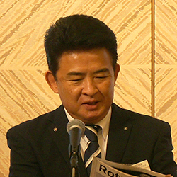 皆様こんにちは。今月はロータリー財団月間ということで、ロータリーの友にも特集記事が掲載されています。来週当クラブでは、地区役員をお招きしまして卓話をお願いしております。長期に渡り地区委員会でご活躍されていますので、面白いお話しが聞けると思いますので皆様楽しみにしてください。また、当クラブは皆様より財団寄付へご協力をいただいており、会長挨拶にもありました通り、伊丹敏彦さんがソサエティとして長きに渡りご尽力いただいております。加えて毎年の財団月間にはクラブとして寄付を募っており、今年の11月は昼例会が本日含め2回となりますので、例会後に私が募金箱を持ちお願いさせていただこうかと思います。来週も行いたいと思いますので、どうぞよろしくお願いいたします。以上です。ありがとうございました。